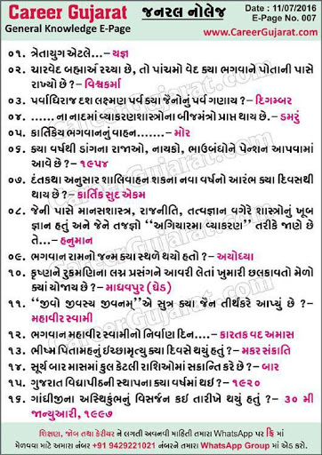 Career Gujarat GK Page - Dt. 11/07/2016 :