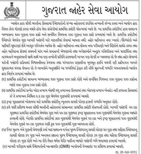GPSC Exam Pattern Related Important Notification - Dt. 31-07-2016