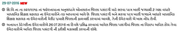 Gujarat State Education Recruitment Board (GSERB), Gandhinagar published Revise Merit List and Selecting District Preference for Secondary Shikshan Sahayak Recruitment 2016 (Round-1)