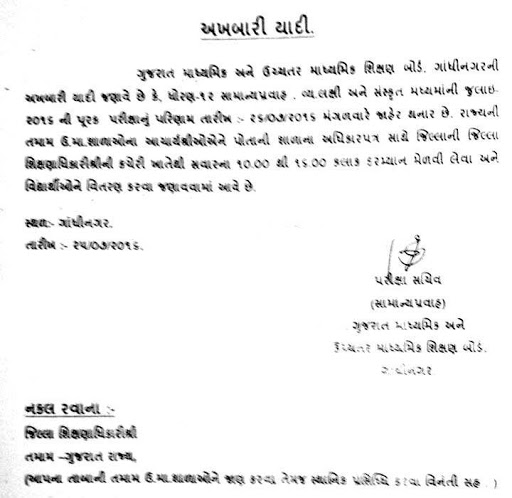 GSEB : Result Notification for HSC Std. 12 (General Stream) Purak Pariksha / Supplementary Exam July 2016 :